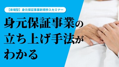 高齢者が病院や老人ホームへ入院・入居する際の身元保証人を引き受け、家族の代わりに生活の補助や、ご逝去後の対応などを行ないます。資格や設備投資は一切必要なく、初期投資100万円程度でスタートができるため、介護事業者はもちろん、葬儀社や不動産会社など、シニアマーケットに新たな施策を打ちたい事業者におすすめのビジネスです。