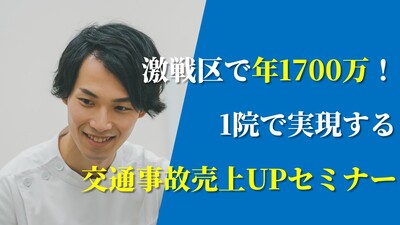 特に交通事故分野に長け、交通事故の患者様対応や整形外科対応、 損保会社対応において豊富な成功事例を有しており、 全国100会員の整骨院交通事故研究会の講師を務めている。