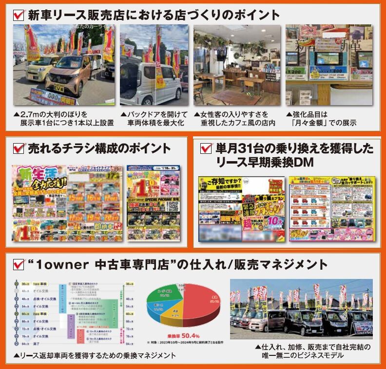 順調に販売台数を伸ばし、2024年には熊本市北区にリース返却車両を活用したワンオーナー中古車専門店を出店。