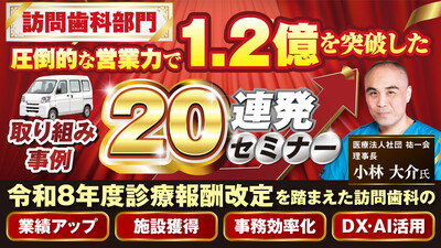 05/31 (日) 大阪会場06/14 (日) 東京会場訪問歯科の成功事例20連発セミナー