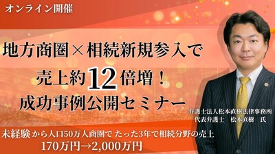 3年で相続売上170万→2000万!地方×新規参入の急成長モデル公開セミナー