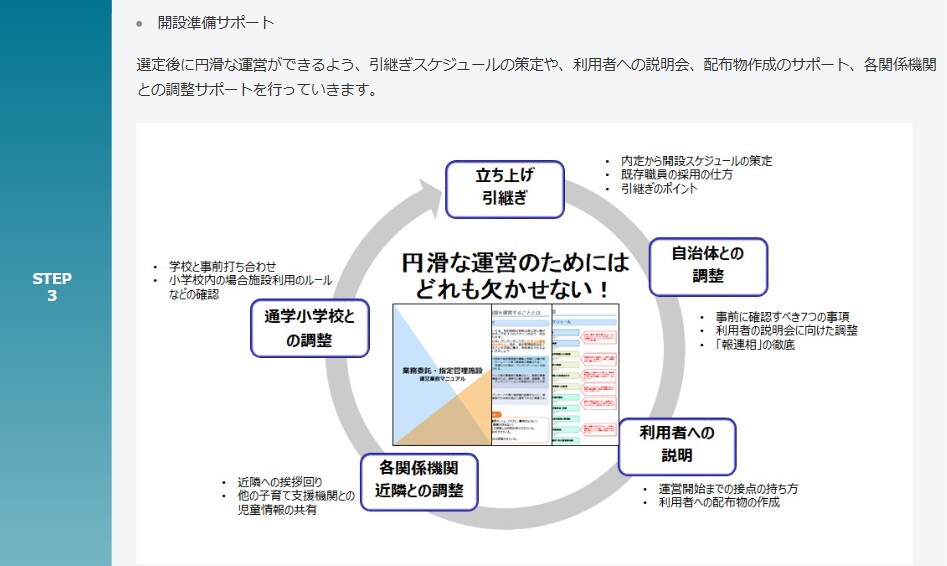 補助金を活用した学童保育事業の参入や、開設に向けた事前準備、プロポーザル対策に至るまで、開設をご検討される方のお悩みをトータルでサポートします。