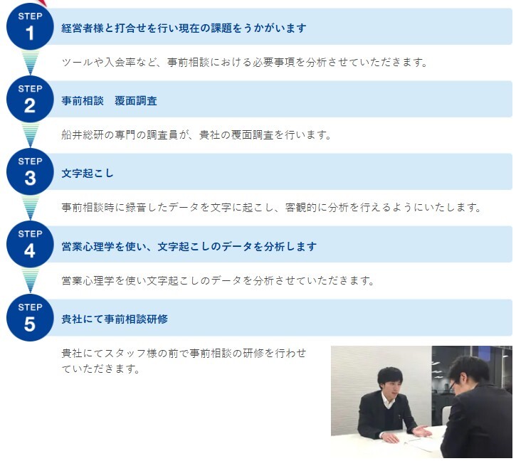 | 船井総研による覆面調査 | 調査分析 | 研修 | ||