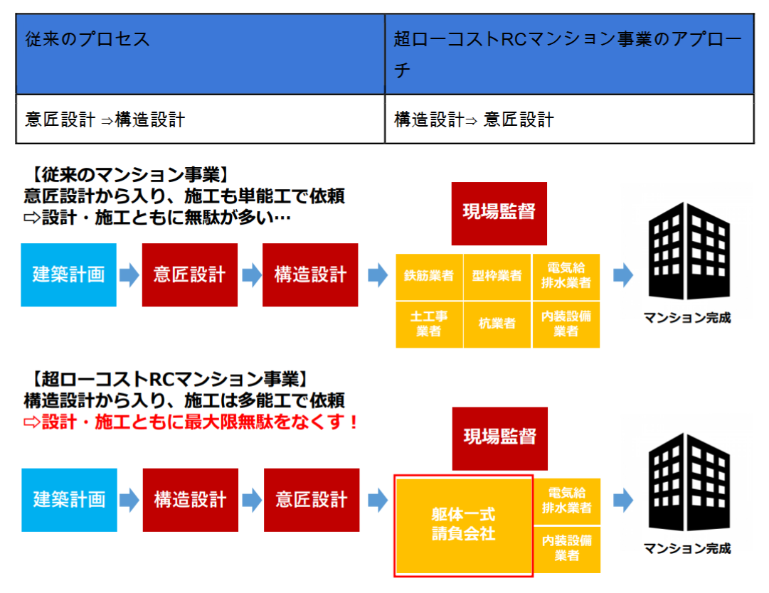 弊社が、上記の建設業界の深刻な悩みを解決するために提唱するのが、【超ローコストRCマンション】事業です。