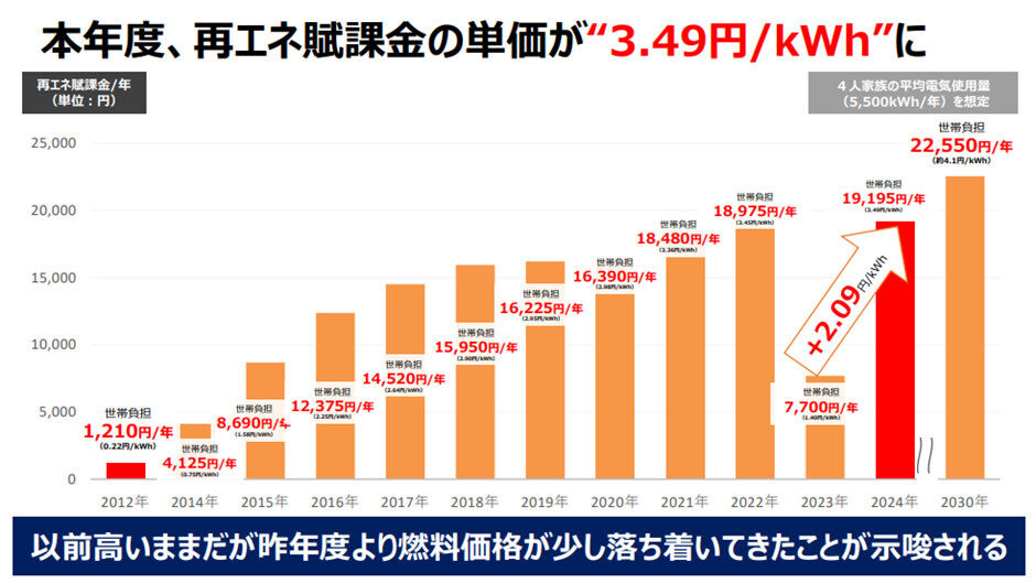 また、電気代の上昇も再エネ導入の追い風となっています。