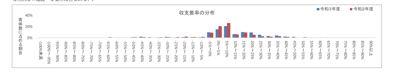 重要なのは、上記の数字はあくまで「平均」であるという点です。同調査では、収支差率の分布も示されており、赤字経営となっている事業所も一定数存在することがわかります。