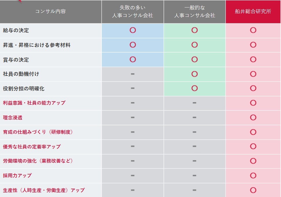 そして評価項目の達成度や習得度に応じた賃金体系を作成します。葬儀業界に合った現場で使える評価制度を作成できることが、船井総研が選ばれる最大の理由です。