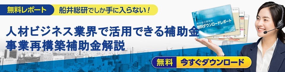 人材ビジネス業界は、常に変化する社会情勢に対応していく必要があります。事業再構築補助金は、人材ビジネス企業が新たな事業展開や業態転換を図る上で、非常に重要な役割を果たす資金調達の手段です。補助金を活用することで、人材ビジネス企業は、新しい市場への参入、事業の多角化、業務効率化のための設備投資など、さまざまな戦略を実行に移すことが可能になります。事業再構築補助金の申請には、専門的な知識やノウハウが必要となります。船井総研グループは、豊富な経験と高い採択率を誇り、事業再構築補助金の申請から採択後のフォローまで、一貫してサポートしています。人材ビジネスにおける事業再構築を検討されている企業は、ぜひ一度、船井総研にご相談ください。