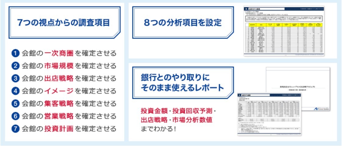 出店コンサルティングを始めてから10年の実績があります。それは10年間の時流の変化、つまり環境の変化や市場の変化に合わせて出店計画を会館ごとに提案し続けてきた歴史でもあります。環境を抑えるコンサルタントだからこそ「今」を捉えた分析提案ができるのです。
