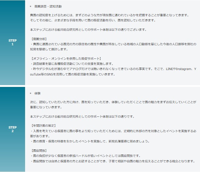 冒頭の文章は「少子化が進み生活様式が変わる中、これまでと同じ園児募集体制では「選ばれる園」になることは難しいです。