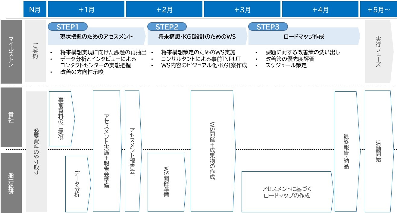 - 次期コンタクトセンターの戦略策定から具体的なアクションの計画へ落とし込む稼働を支援します